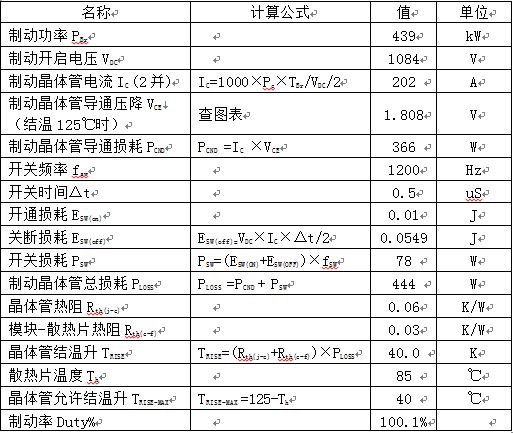1.首先選取一電阻值,比如3Ω,然后根據此制動電阻值可以知道制動電流和制動功率,利用表二可以算出連續制動時制動晶體管的結溫升TRISE。