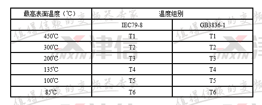 這是與氣體點燃溫度有關的電氣設備(假定環(huán)境溫度為40℃時)的最高表面溫度,點燃能量與點燃溫度無關。在標準BS5345第一部分中列出了所有可燃性氣體和其組別。