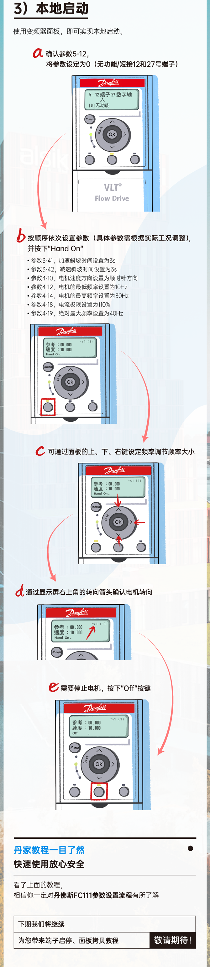 丹佛斯變頻器設置電機參數和本地啟動的方法