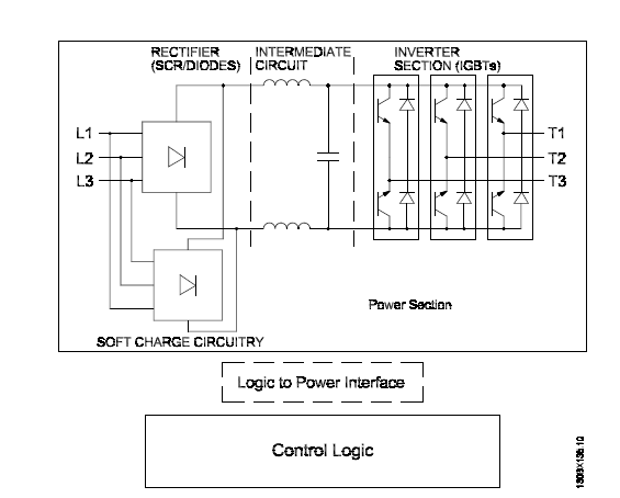 電壓在經(jīng)過整流器部分后,便會(huì)到達(dá)中間部分。整流電壓通過由直流總線感應(yīng)器和直流總線電容器組組成的正弦波濾波器電路進(jìn)行平抑。
