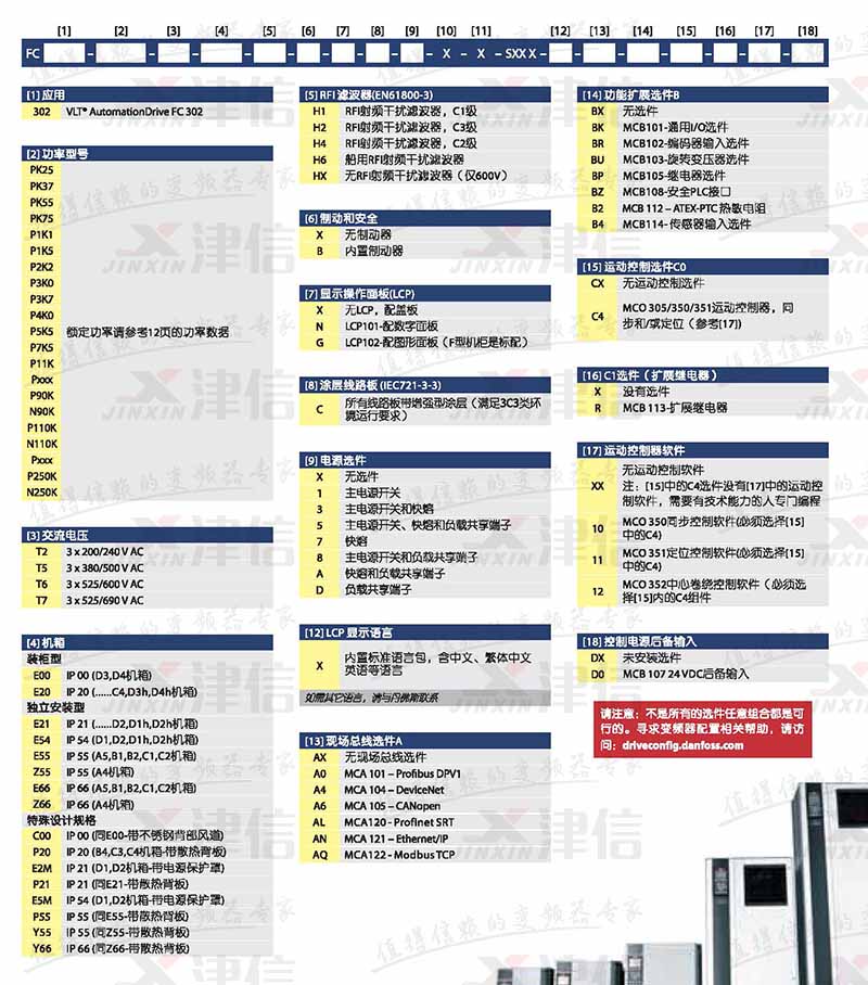 丹佛斯FC302變頻器的功率范圍和型號如下: