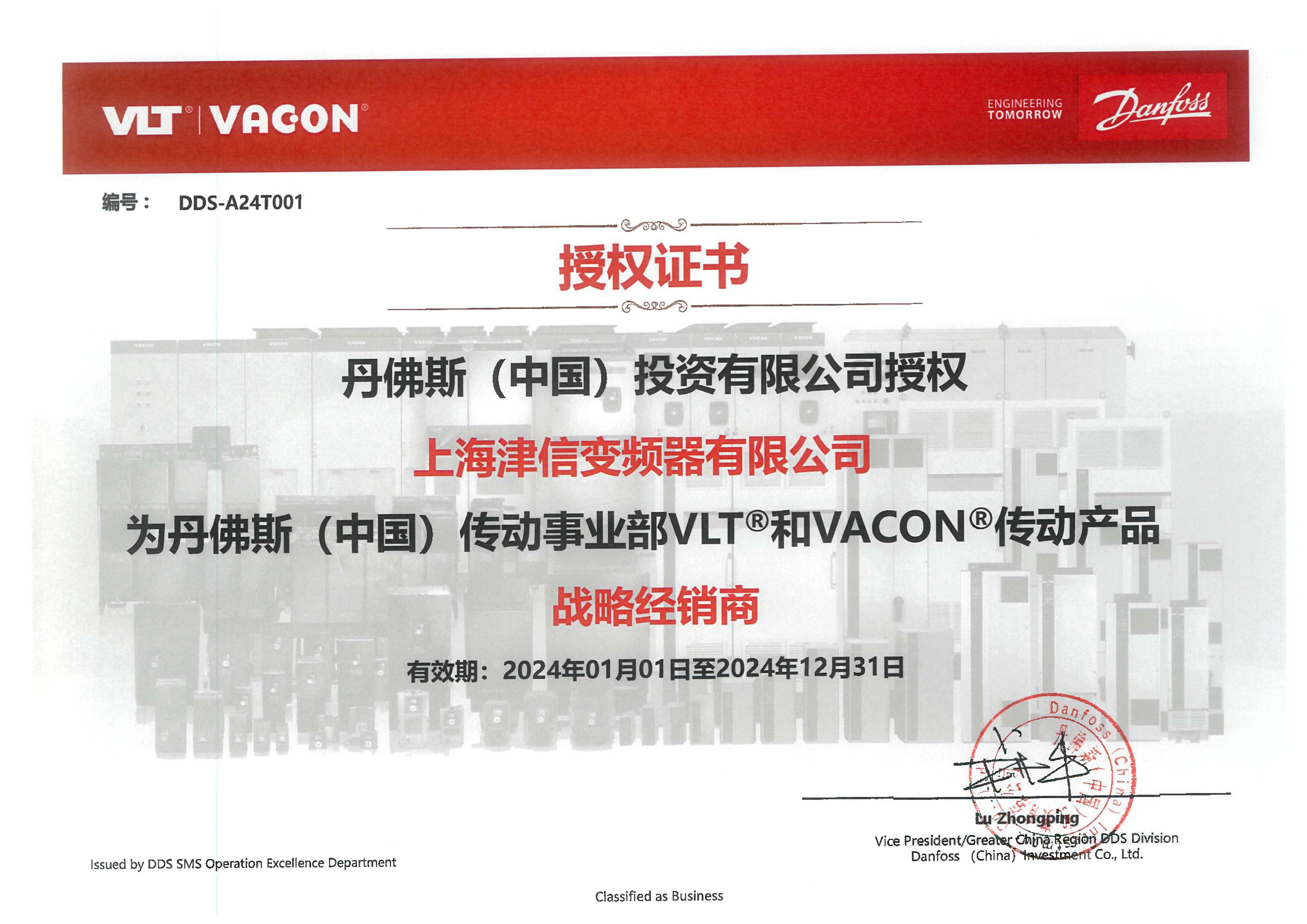 上海津信變頻器有限公司是丹佛斯傳動戰略合作經銷商及授權DrivePro專業技術服務中心,匯川認證合作經銷商,臺達變頻器/可編程序控制器一級代理及指定技術服務中心。自1998年成立至今,連年獲得丹佛斯優秀技術獎和最佳銷售獎,中達電通最佳服務獎、上海市寶山區優秀企業獎,各大工控網站、專業媒體頒布的最佳服務、市場創新獎等等。