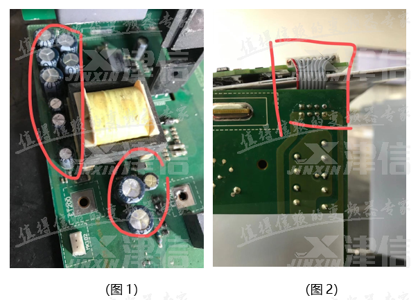 這類故障在FC111的22KW及以下功率段機型是常見故障。由于電源卡靠該排線與控制卡連接,此排線極易損壞,導致控制卡工作電壓不正常,從而觸發(fā)報警A47。因此每次維修此功率段機器,需要重點檢查此排線。