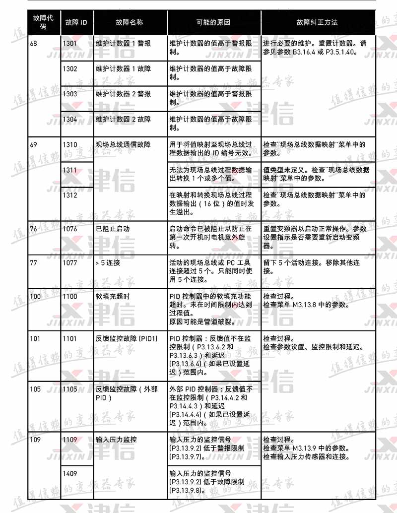 故障代碼 故障 ID 故障名稱 可能的原因 故障糾正方法